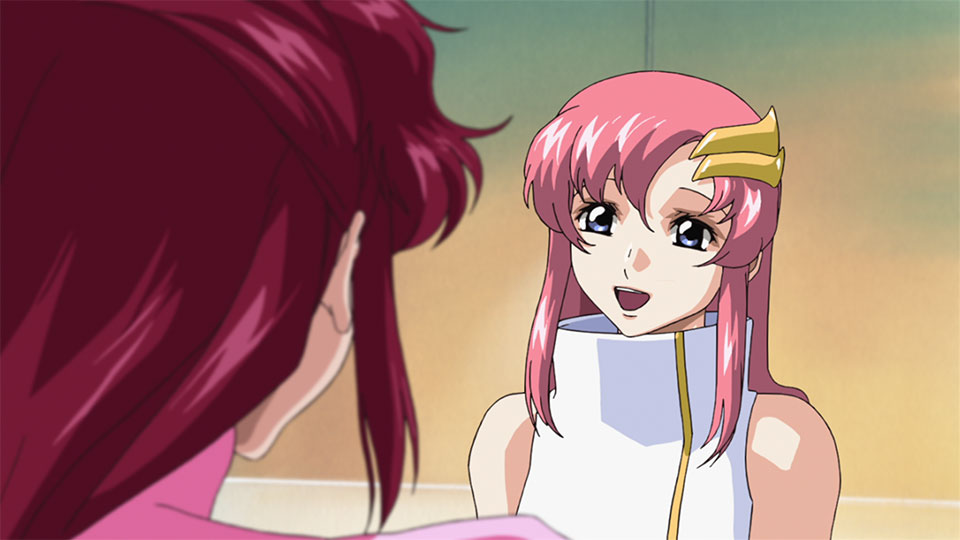 在碎石區域中發現的救生艇裡面藏著一名少女,以及一台小小的機械人,就是莉古絲・古蘭爾和哈囉。她是布蘭度最高評議會議長史基魯・古蘭爾的女兒,為了出席「血色情人節」悲劇發生一周年的追悼儀式,以慰問團團長的身份來到這裡。性格天爛漫的她為氣氛緊張的大天使號,帶來奇妙的安穩感覺。惟獨天生討厭新人類的佩莉・阿斯達,拒絕接受她。 與此同時,在威沙里斯號維修期間,亞斯蘭被傳召要搜尋其未婚妻莉古絲・古蘭爾的下落,並奉命把她救出、以英雄的身份返回布蘭度。 另一方面,大天使號在就如何處置莉古絲而爭拗的時候,收到了第8艦隊的先頭救援部隊訊號。這個好消息令艦上的陰霾一掃而空,然而,札多軍的威沙里斯號,也正逐步迫近救援艦隊……。